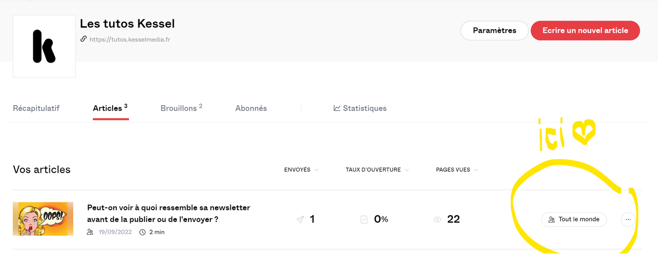 Lorsque vous publiez un article sur Kessel, vous pouvez choisir de le rendre accessible: